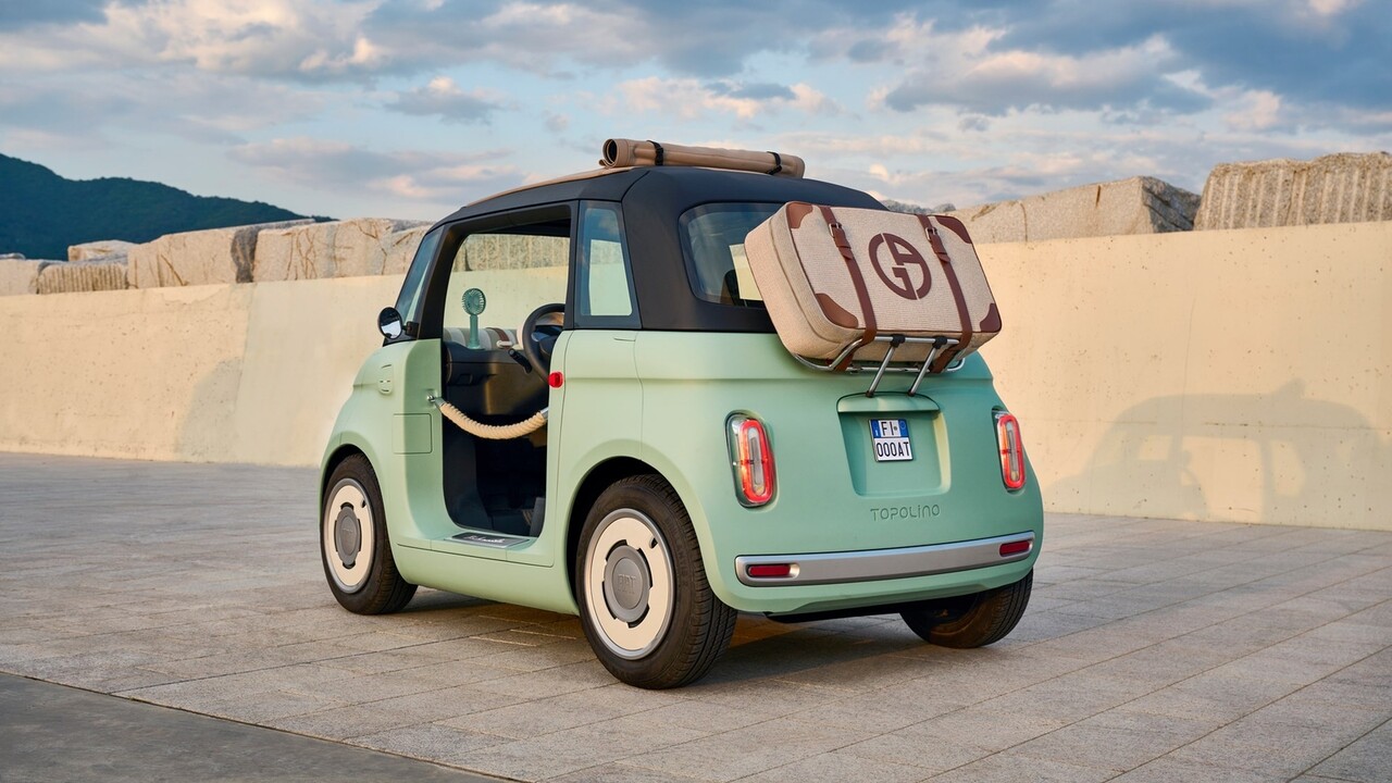 The Topolino Dolcevita model can be further personalized with a range of accessories and customization options, including: wooden door panels, fabric roof stripes in various colors, unique wheel designs and branded luggage sets and storage solutions.